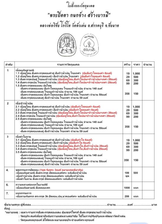 ชุดกรรมการจัดสร้าง 199 ชุด ราคาจอง 500 บาท |