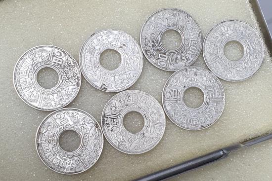 วัดใจเหรียญ 10 สตางค์(เนื้อเงิน)แข้งสิงห์จำนวน 7 เหรียญ