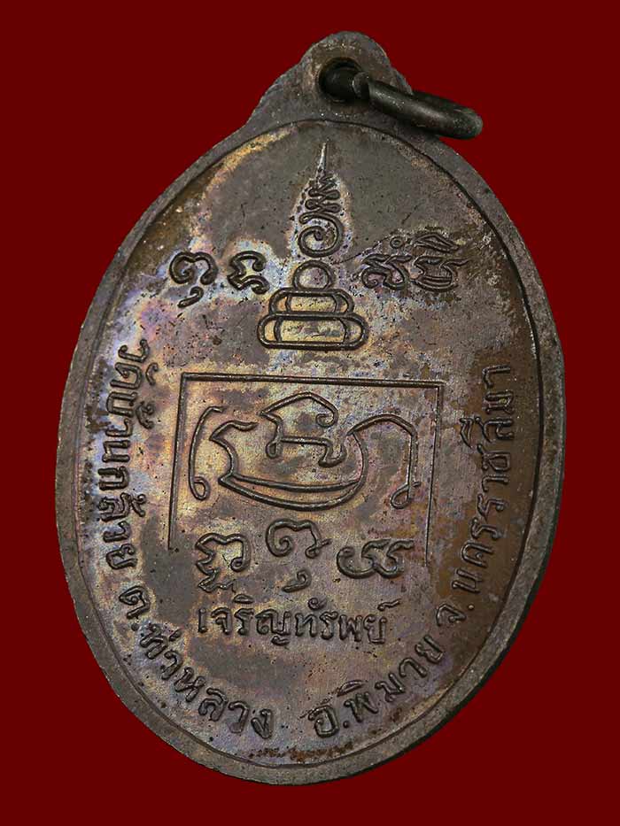 วัดใจ เหรียญเจริญทรัพย์ หลวงพ่อโต ยโสธโร วัดบ้านกล้วย จ.นครราชสีมา ปี 2517 เนื้อทองแดง |