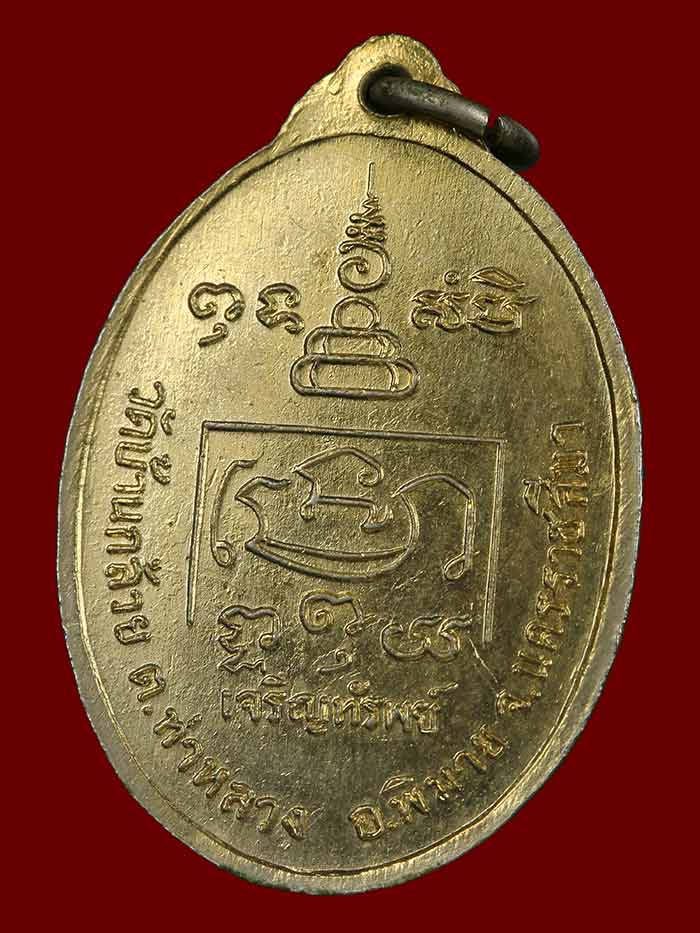 วัดใจ เหรียญเจริญทรัพย์ หลวงพ่อโต ยโสธโร วัดบ้านกล้วย จ.นครราชสีมา ปี 2517 เนื้อกะไหล่ทองลงยา |