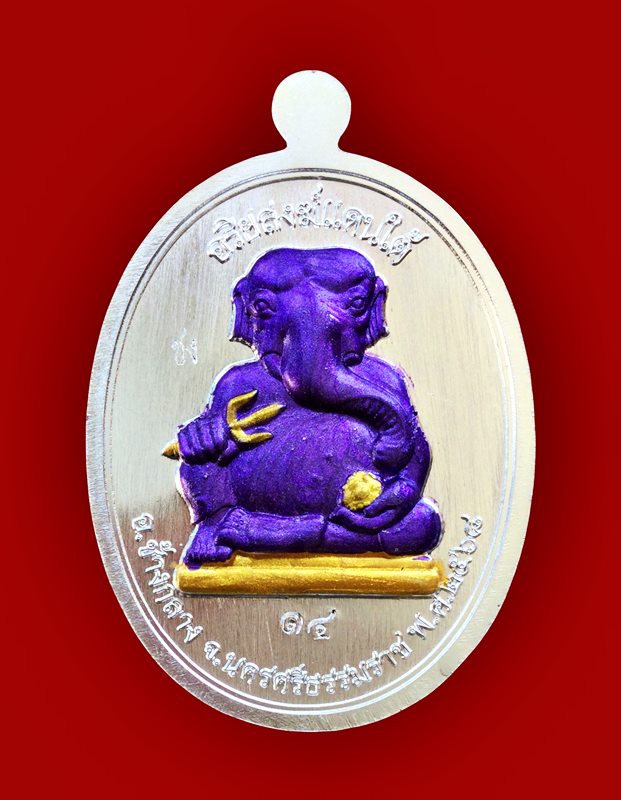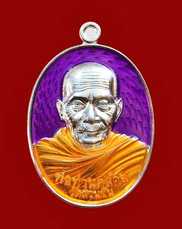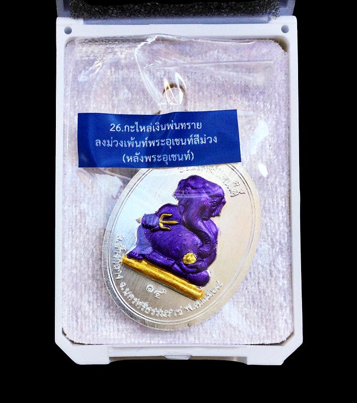 +!!เคาะเดียวllดง ตลอดสาย!!+ เหรียญ พ่อท่านคล้าย วัดสวนขัน จ.นครศรีธรรมราช (เนื้อกะไหล่เงินพ่นทราย ลงยาม่วง หลังเพ้นพระอุเชนท์สีม่วง เลขสวย 14) พร้อมกล่องครับ