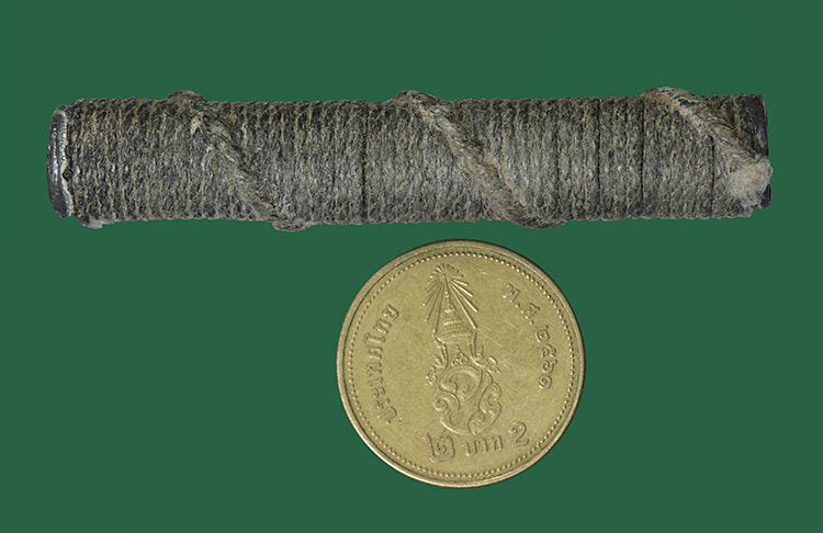 วัดใจ**เครื่องราง ตะกรึดถักเชือกเนื้อตะกั่วเก่า ยาว 2.5นิ้ว ไม่ทราบที่....ตามสภาพครับ |
