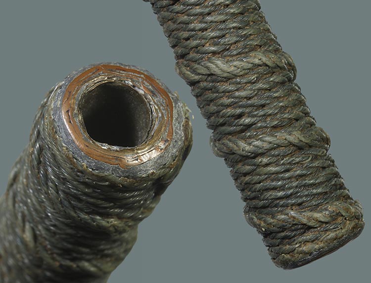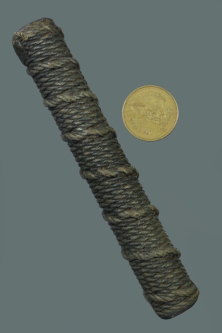 วัดใจ**เครื่องราง ตะกรุดถักเชือกเนื้อสามกษัตริย์ ทองแดง+ทองเหลือง+ตะกั่วเก่า ยาว 4.7นิ้ว ไม่ทราบที่.....ตามสภาพครับ