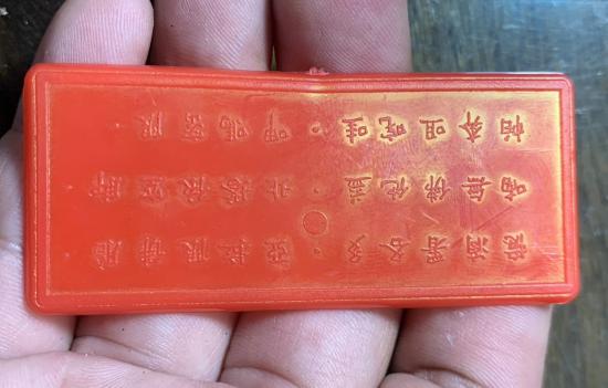 แผ่นพลาสติกหลังยันต์ภาษาจีน หลวงพ่อโอภาสี |