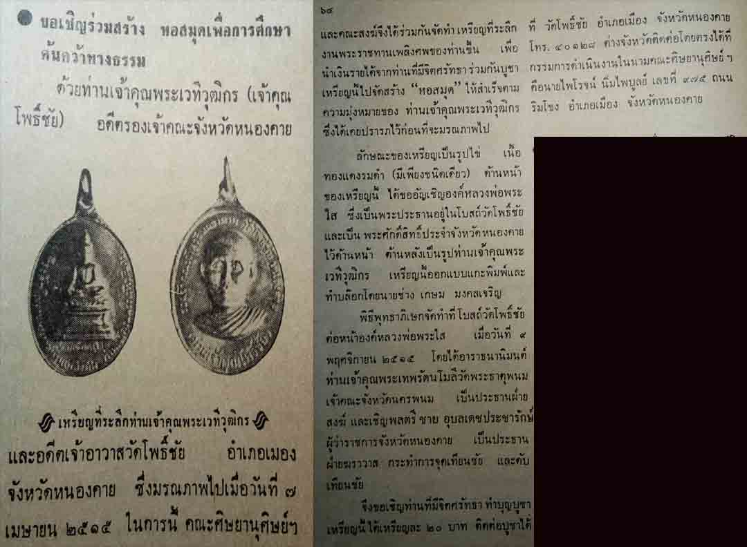 เหรียญ หลวงพ่อพระใสหลังท่านเจ้าคุณโพธิ์ชัย ปี 15 พุทธาภืเษกต่อหน้าองค์หลวงพ่อพระใส |