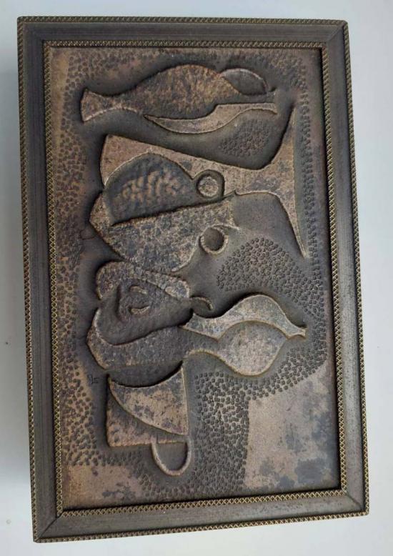 กล่องไม้โบราณหุ้มด้วยโลหะ ลวดลายนูนต่ำ ขนาด 4*6 หนา 1.5 นิ้ว