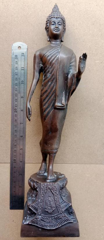พระบูชา ปางลีลา เนื้อโลหะ ความสูง 16 นิ้ว ขนาดฐาน 4 นิ้ว x 4 นิ้ว ตามรูป |