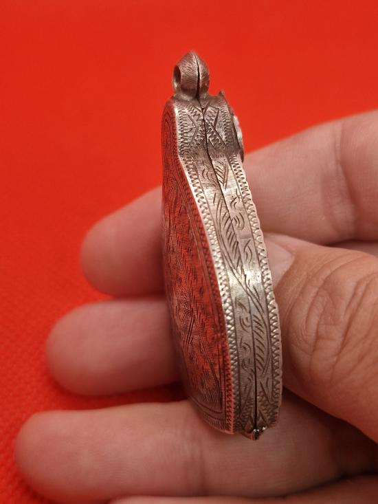 ตลับเงินแท้ แกะลาย หลังทึบ หน้าจอกว้าง 2.3 ซม.สูง 3.4ซม.น้ำหนัก 13.4g สภาพ สวย สมบูรณ์