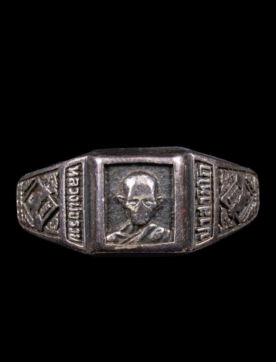 แหวนหลวงพ่อรวยวัดตะโก เนื้อเงินสภาพใช้น่าจะปี 56 ขนาด 1.8 cm |