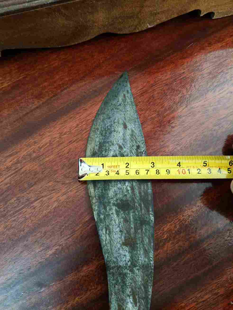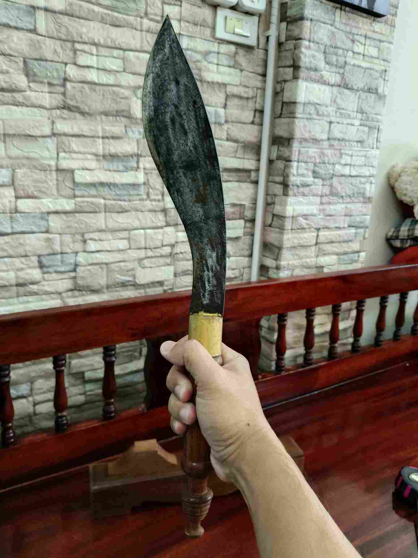 ใหญ่อลังการ ยาวรวม20นิ้ว สันหนา5มิล ใบมีดกว้างสุด3นิ้ว ไม่ทราบที่ ไม่มีอักขระ งานเก่า