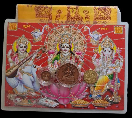 เหรียญพระพิฆเนศ หลังพระแม่อุมาเทวี วัดพระศรีมหาอุมาเทวี (วัดแขกสีลม) พิมพ์ใหญ่ เนื้อทองแดงซาติน ขนาด 3 ซม เหรียญเล็ก เนื้อทองแดงปัดเงา ขนาด 1.5 ซม เหรียญพระแม่ ขนาด 2 ซม (จากอินเดีย)สวยงามมาก ผ้ายันต์ พร้อมแผ่นปั้มทองแดง (พิเศษ ชุดใหญ่ ชุดสุดท้าย) |