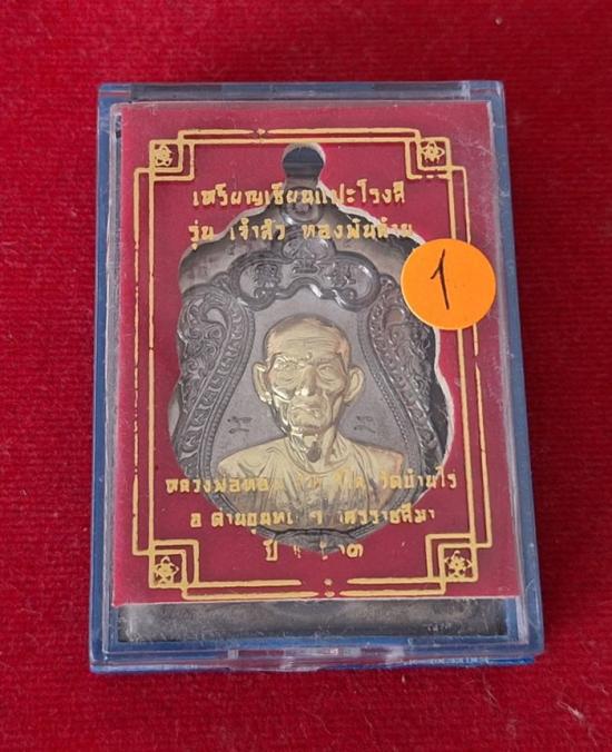 วัดใจ เซียนแปะโรงสี รุ่น เจ้าสัว ทองพันล้าน หลวงพ่อทอง สุทธสีโล วัดบ้านไร่ เนื้อตะกั่วนำฤกษ์ หน้ากากทองระฆังไม่ตัดปีกตอก9รอบ มีจารหน้าหลัง |