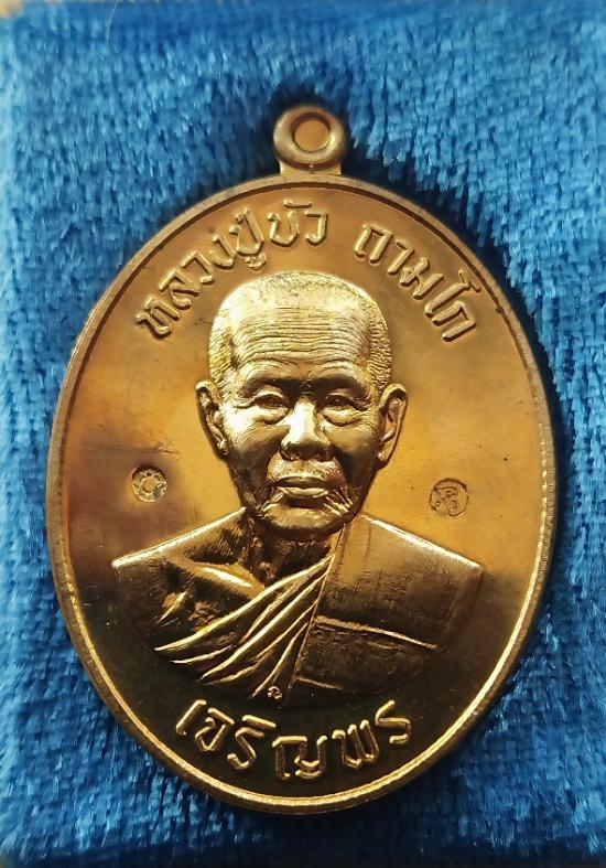เหรียญเจริญพรล่าง ครึ่งองค์ อายุ88 หลวงปู่บัว วัดศรีบูรพาราม จ.ตราด ปี2557 |