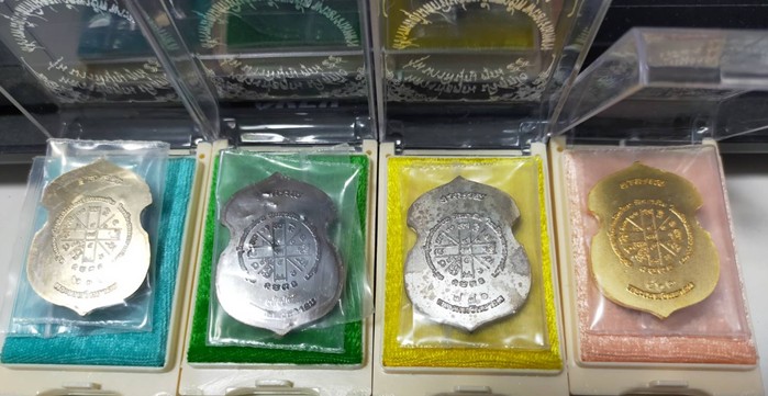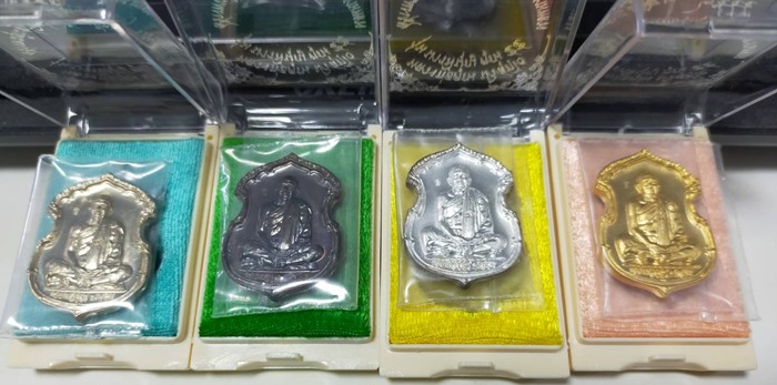 1 เหรียญกะไหล่เงิน 2เนื้อกระไหล่ทอง 3เนื้ออัลปาก้า 4ทองเเดงมันปู รับประกันตามกฎครับ |