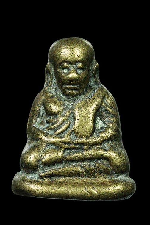 รูปหล่อ หลวงพ่อเงิน ไม่ทราบที่ พิมพ์ล้ายปืนแตก แต่ก้นตอกโค๊ต เนื้อทองเหลือง ตะไบสวย |