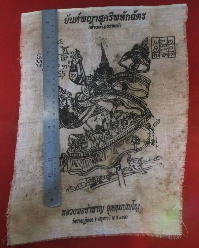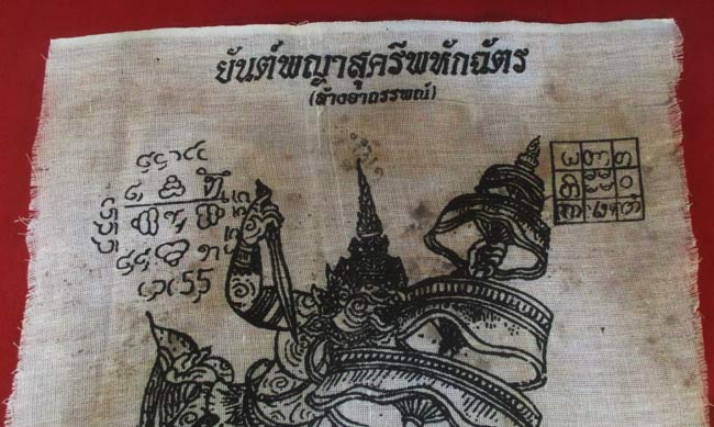 ผ้ายันต์ พญาสุครีพหักฉัตร (ล้างอาถรรพน์) หลวงพ่อชำนาญ อุตตฺมปญฺโญ วัดบางกุฏีทอง จ.ปทุมธานี ครับ (พระบ้าน ครับ) |