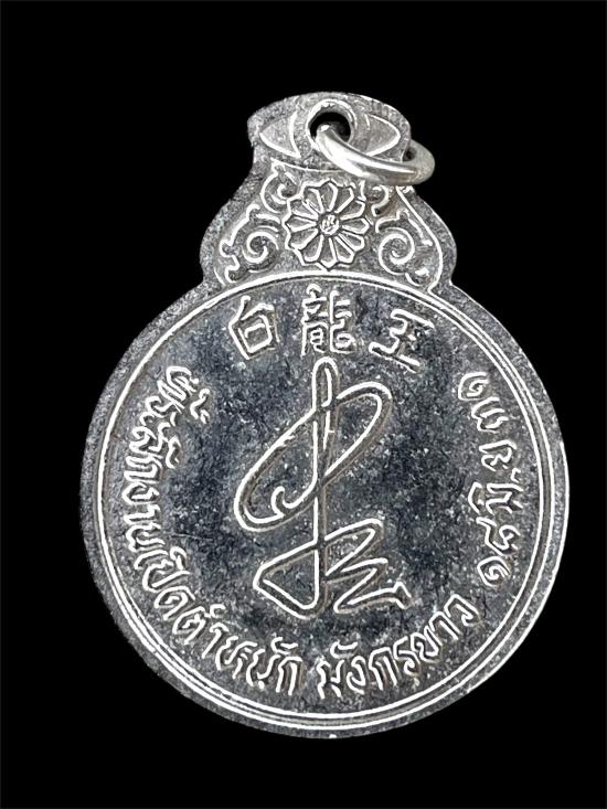 เหรียญปู่มังกรขาวอาจารย์กิมน้ำสร้างรุ่นแรก ปี2531 ที่ระลึกเปิดตำหนักเนื้ออัลปากาชุบนิเกิ้ล เดิมๆสร้างน้อยหายากครับ