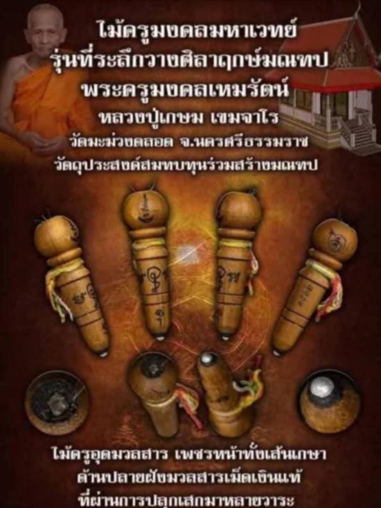 วัดใจ...ฝังเม็ดเงินแท้ #11 ไม้ครูมงคลมหาเวทย์ หลวงปู่เกษม วัดมะม่วงตลอด 2565 หัวฝังเพชรหน้าทั่งเกศามวลสาร ปลายฝังเม็ดเงิน |