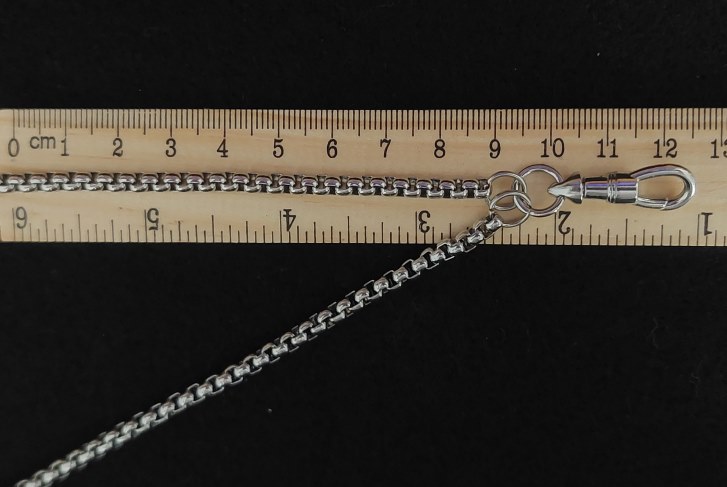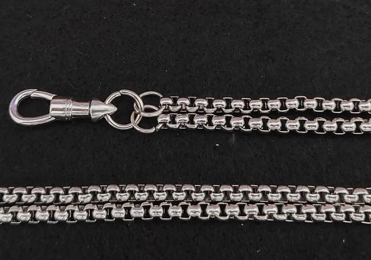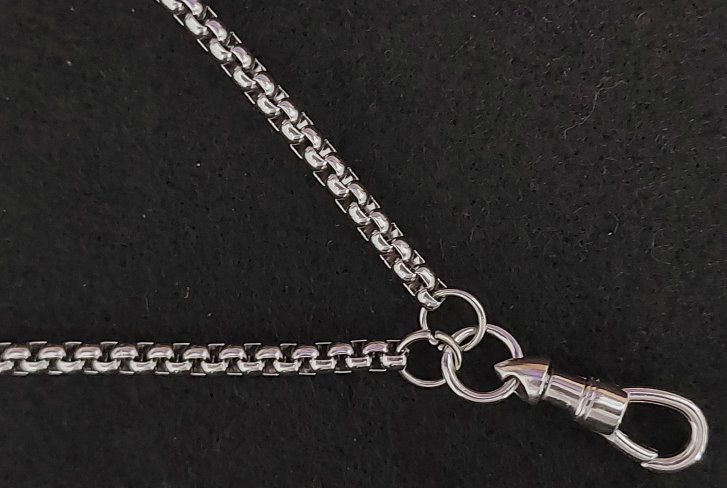 สร้อยสแตนเลส ลายผ่าหวาย ยาว 26 นื้ว พร้อมสปริงก้ามปูสแตนเลสหมุนได้ |