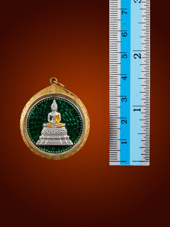 เหรียญพระพุทธสิหิงค์ กระทรวงคมนาคม เนื้อเงินลงยาเขียว ปีพ.ศ.2539 เลี่ยมทอง 68% พร้อมบัตรรับรอง สวยกริ๊ปครับ