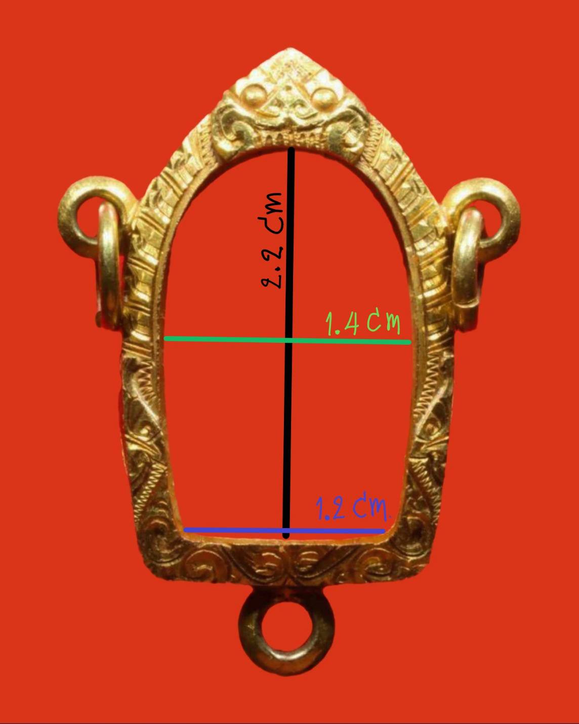 ทองคำ 84% กรอบทองคำ 3 ห่วง หนาๆสวยๆ น้ำหนัก 5.3 กรัม ขนาดกรอบตามภาพ กรอบในสูง 2.2 cm กว้าง 1.2-1.4 cm. |