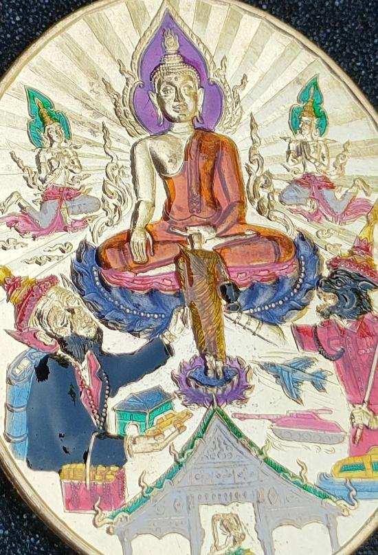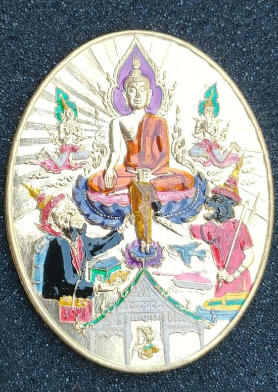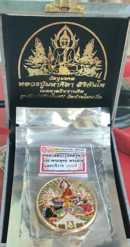 เหรียญแกะสด พุทธศิลป์ "สาธุ" หลวงปู่มหาศิลา สิริจันโท อุปถัมภ์สร้างโบสถ์มหาอุตม์ วัดบ้านโนนเดื่อ เนื้อสัตตะ เทพศาสตราวุธศัตรูพ่าย ลงยาพระพุทธพระสงฆ์และบริวาร หมายเลข ๙๔ พร้อมกล่อง สร้าง๑๐๐เหรียญ |