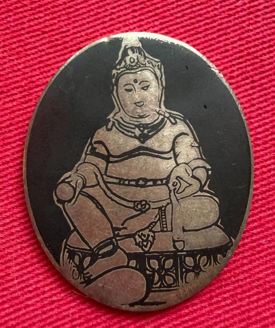 วัดใจไปเหรียญพระธนบดีศรีธรรมราชา จักรพรรดิพุทธาภิเษก นครศรีธรรมราช วัดชะเมา พ.ศ.2548 เนื้อเงินลงถม