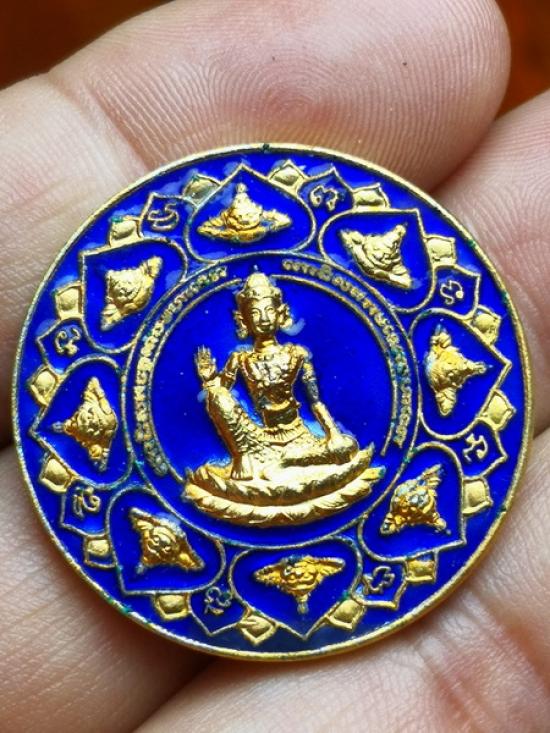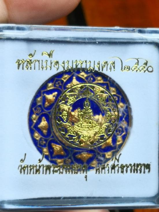 เหรียญจตุคาม รามเทพ เนื้อทองแดงกะไหล่ทองลงยาน้ำเงิน รุ่นหลักเมืองมหามงคล 50 ขนาด 3.2 ซม. พร้อมกล่องเดิมตามรูป ราคาเบาๆ |