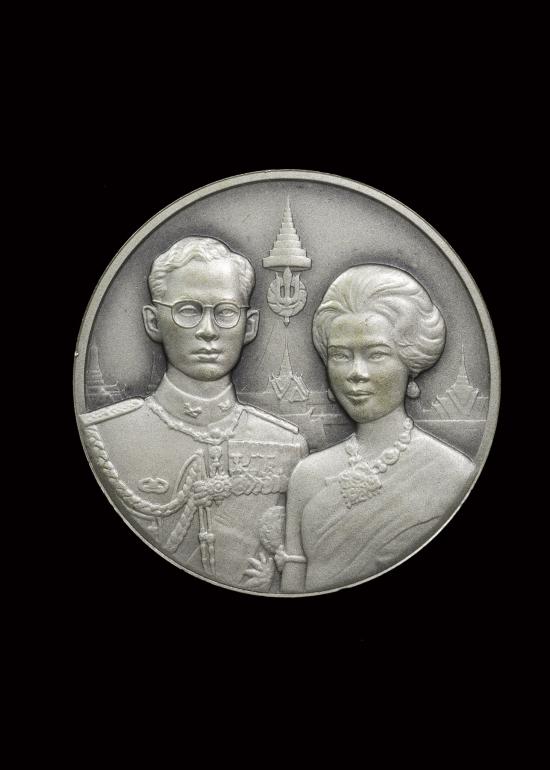 เหรียญในหลวงร.9-ราชินี ที่ระลึกครบ 50 ปี ราชาภิเษกสมรส ปี2543 ((( เนื้อเงิน รมดำ พ่นทรายพิเศษ ))) นิยม ผลิตตามจำนวนสั่งจอง สวยเดิม ไม่ผ่านใช้ กล่อง+ใบ
