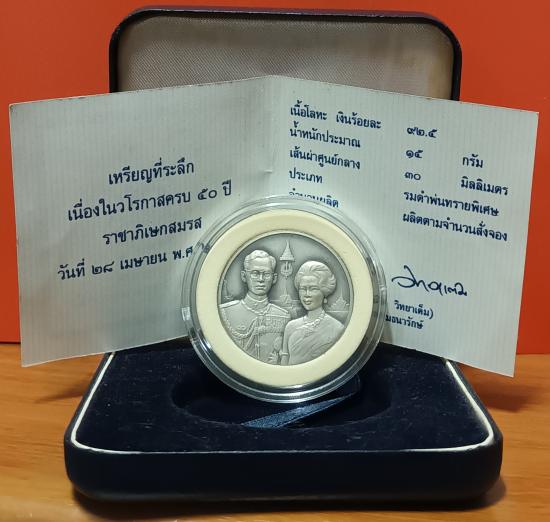 *เคาะเดียว* เหรียญในหลวงร.9-ราชินี ที่ระลึกครบ 50 ปี ราชาภิเษกสมรส ปี2543 ((( เนื้อเงิน ))) กล่อง+ใบ