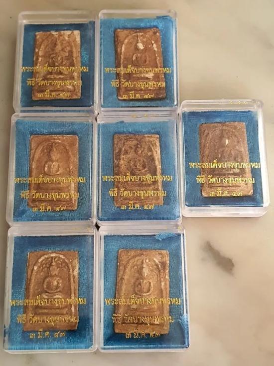 เคาะเดียว 7องค์พระสมเด็จบางขุนพรหม ชุดแช่น้ำมนต์ ปี 2547 พระแท้ ผสมผงบางขุนพรหมเก่าพร้อมมวลสารจัด พุทธคุณสุดๆคัดสวยสมบูรณ์ |