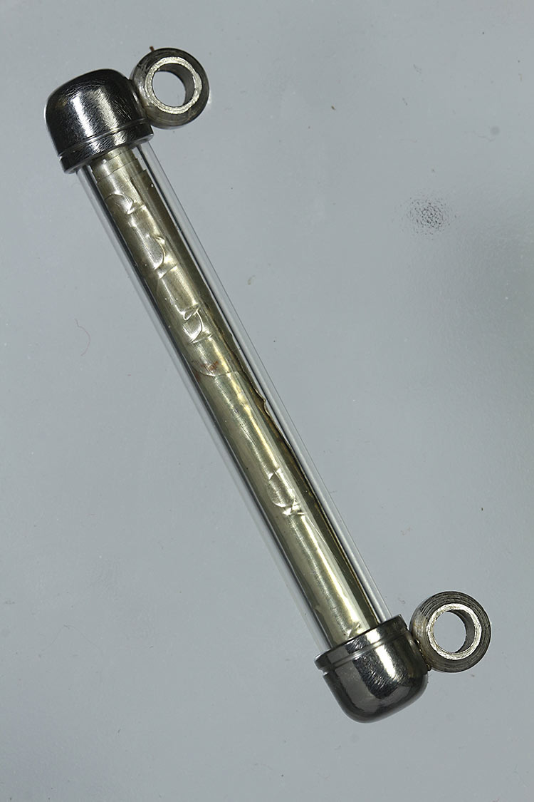 วัดใจ**เครื่องราง ตะกรุดปลดหนี้หรือตะกรุดกันผี กันคุณไสย แผ่นเงิน จารยันต์ด้วยมือ หลวงปู่กาหลง เขี้ยวแก้ว ความยาว 4 ซม. ใส่หลอด...พร้อมซองเดิมๆครับ |
