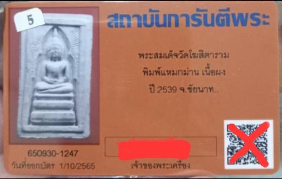 พระสมเด็จแหวกม่าน ย้อนยุค ปี 39 หลวงพ่อกวย วัดโฆสิตาราม หลังมีตราปั๊ม ไม่มีกล่อง พร้อมบัตร G