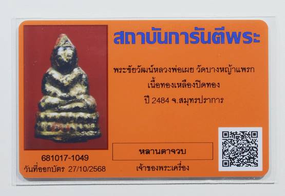 พระชัยวัฒน์หลวงพ่อเผย วัดบางหญ้าแพรก ปี2484 ลงรักปิดทองเดิม (แจกกรรมการ) สวยแชมป์ครับ