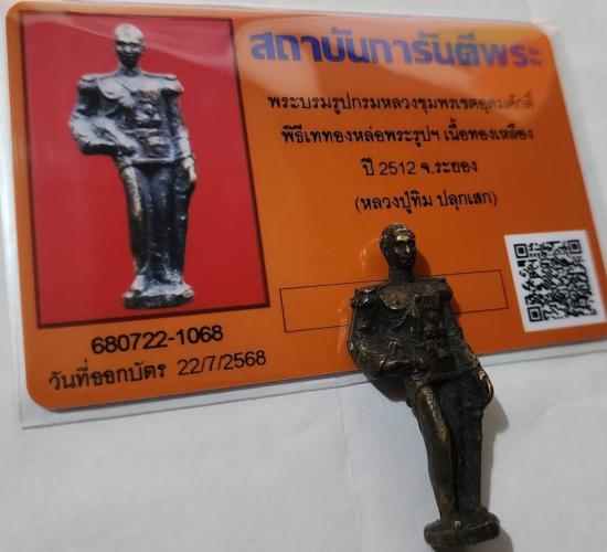 พระบรมรูปกรมหลวงชุมพร เขตอุดมศักดิ์ พิธีเททองหล่อพระรูปฯ (ปากน้ำประแสร์) เนื้อทองเหลือง ปี 2512 จ.ระยอง (หลวงปู่ทิม ปลุกเสก) มาพร้อมบัตรรับรอง
