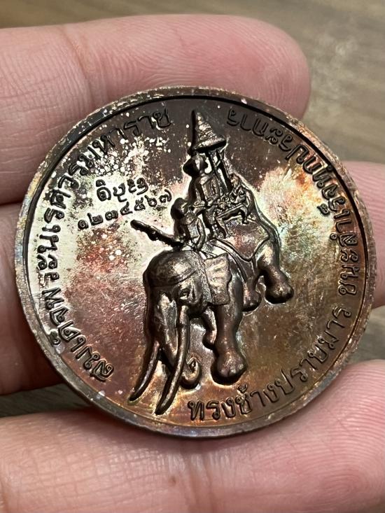 ชื่อพระเครื่อง เหรียญสมเด็จพระนเรศวรมหาราช ทรงช้างปราบมาร ชนะสำเร็จทุกประการ เสาร์5รุ่น1 ปี2557 สภาพสวยกริบ