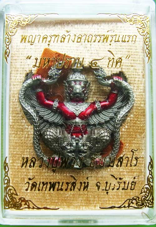 พญาครุฑ รุ่นแรก มหาปราบ ๔ ทิศ หลวงปู่พวง วัดเทพนรสิงห์ (วัดโคกตาสิงห์) จ.บุรีรัมย์ ปี 2565 เนื้ออัลปาก้าลงยาแดง หมายเลข 169 สวยๆ พร้อมกล่องเดิม |