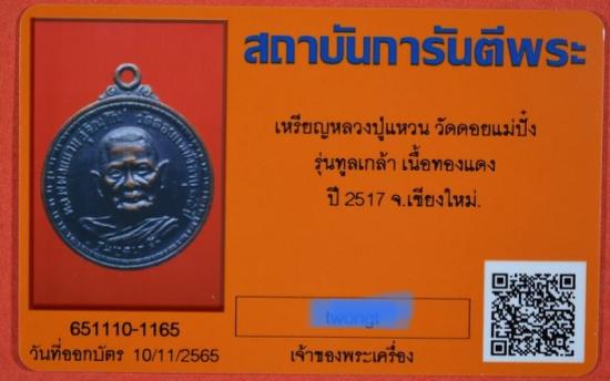 รายละเอียด เหรียญหลวงปู่แหวน วัดดอยแม่ปั๋ง เนื้อทองแดงรมดำ ปี 2517 รุ่นทูลเกล้า จ.เชียงใหม่ พร้อมบัตรสบายใจครับ
