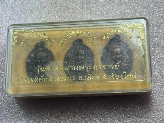 เหรียญชุดกรรมการพิเศษ 3 พระอาจารย์ (หลวงปู่มั่น หลวงปู่แหวน คูบาศรีวิชัย) รุ่นสมโภช 600 ปี วัดเจดีย์หลวงวรวิหาร จ.เชียงใหม่ ปี2538 ผสมฉนวนและมวลสารศักดิ์สายป่ากรรมฐานอย่างมากมาย |