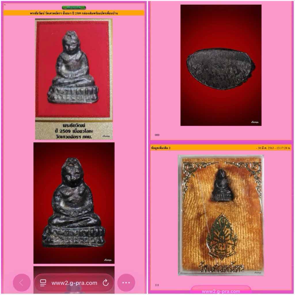 พระชัยวัฒน์รุ่นแรก วัดเศวตฉัตร 2509 เนื้อนวะโลหะ ผิวกลับดำ สวยเดิม คราบเบ้าตามซอก มีกล่องเดิม |