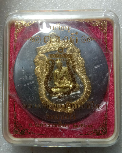 เหรียญรุ่นดวงดี หลวงพ่อทอง วัดบ้านไร่ เนื้อตะกั่วหน้ากากฝาบาตร ขอบฝาบาตร ไม่ตัดปีก ตอก ๙ รอบ โค๊ต แจก พิเศษกรรมการ หมายเลข ๑๕๕๑ กล่องเดิม |