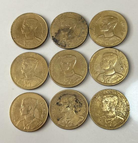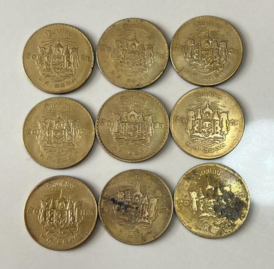 เหรียญ 50 สตางค์ สีทองเหลือง พ.ศ.2493 จำนวน 9 เหรียญ