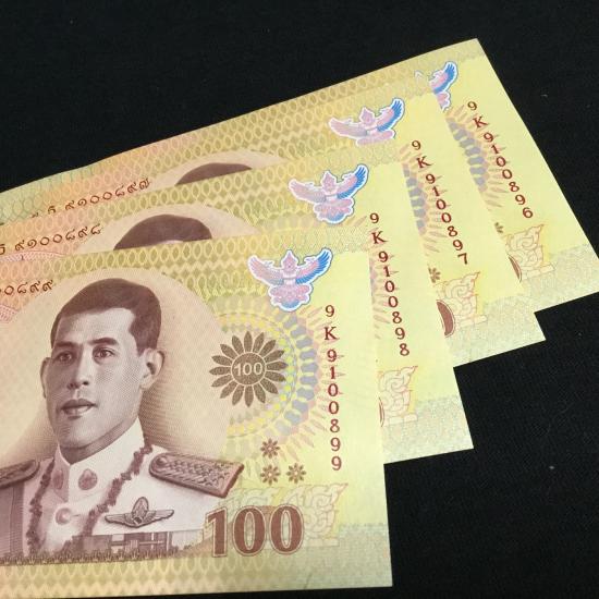แบงค์ 100 ที่ระลีก บรมราชาภิเษก รัชกาลที่ 10 เลขเรียง รวม 4 ฉบับ **หมวด 9K-9100896-9K-9100899** มีหมวด9- 9 หน้า 9หลัง