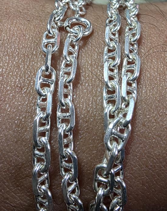 มือ 1 สร้อยเงินแท้ ลายโซ่สมออิตาลีลาย ยาว 22 นิ้ว กว้าง 3 มิล หนัก 14.7 กรัม ลายยอดนิยมเป็นของใหม่มือ 1 ไม่ผ่านการใช้งานมาก่อนครับ งานตันๆ แข็งแรงครับ |