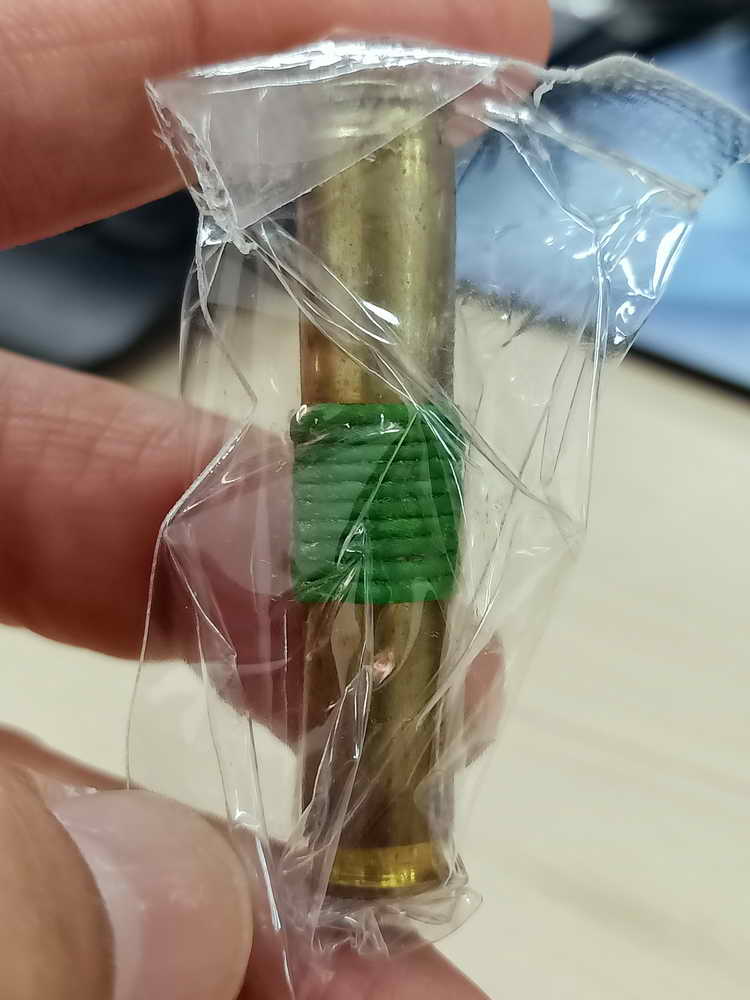วัดใจ 100 ตะกรุดลูกปืน มหาอุตม์ พระอาจารย์เลี้ยง วัดจอมเกษ จ.อยุธยา เชือกเขียว ขนาด 9mm หมายเลข 289 กล่องเดิม |