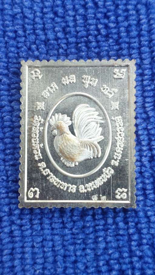 เหรียญแสตมป์เจริญโชค หลวงพ่อพัฒน์ เนื้อเงินลงยา เลข 82 เคาะเดียว