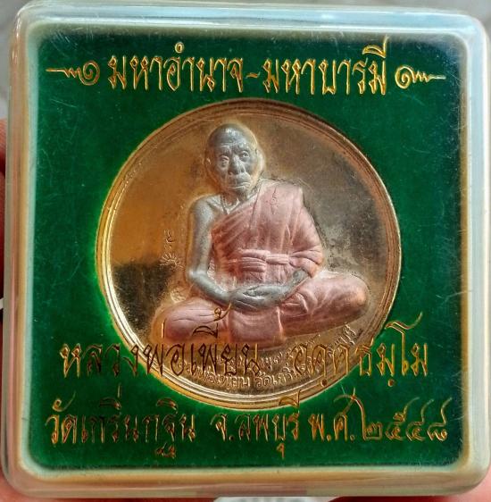 เหรียญจิ๊กโก๋ใหญ่..มหาอำนาจ มหาบารมี..เนื้อสามกษัตริย์..หลังหน้าเสือ..หลวงพ่อเพี้ยน วัดเกริ่นกฐิน ลพบุรี ปี 48 พร้อมกล่อง |
