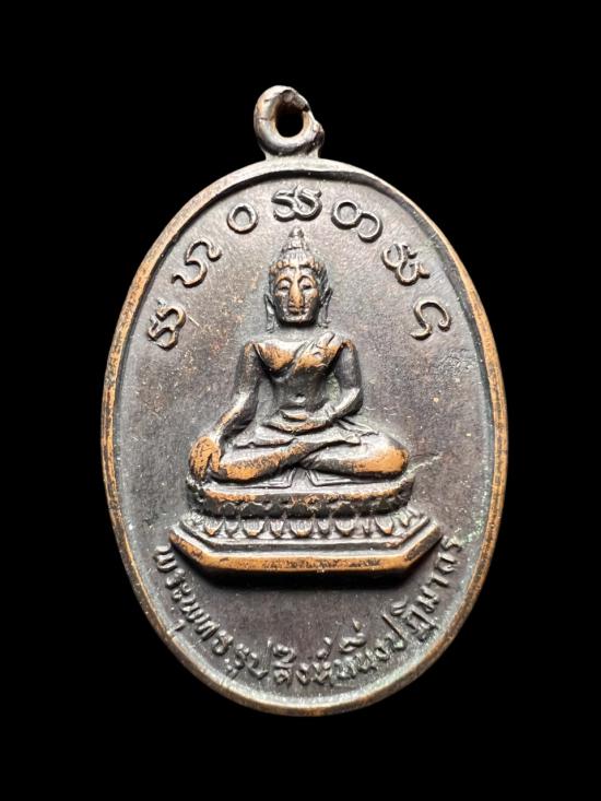 เหรียญสิงห์หนึ่ง วัดร่องแมด เนื้อทองแดงรมดำ ปี 17 |