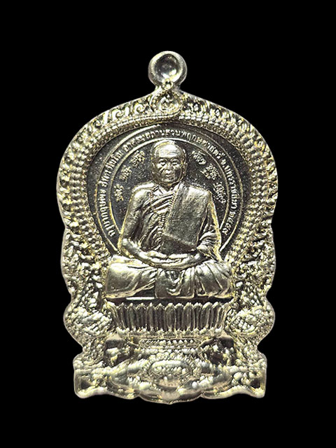 ***เหรียญนั่งพาน หลังเรียบมีจาร เนื้ออัลปาก้า ครูบากฤษณะ อินทวัณโณ จ.นครราชสีมา ปี 2559*** |