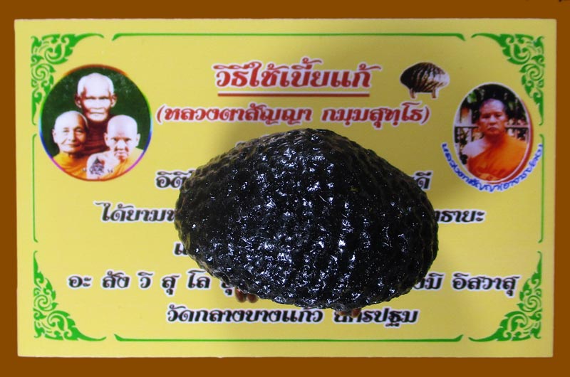 เบี้ยแก้ถักลงรัก หลวงพ่อสัญญา(คง) วัดกลางบางแก้ว จ.นครปฐม พร้อมใบคาถา |